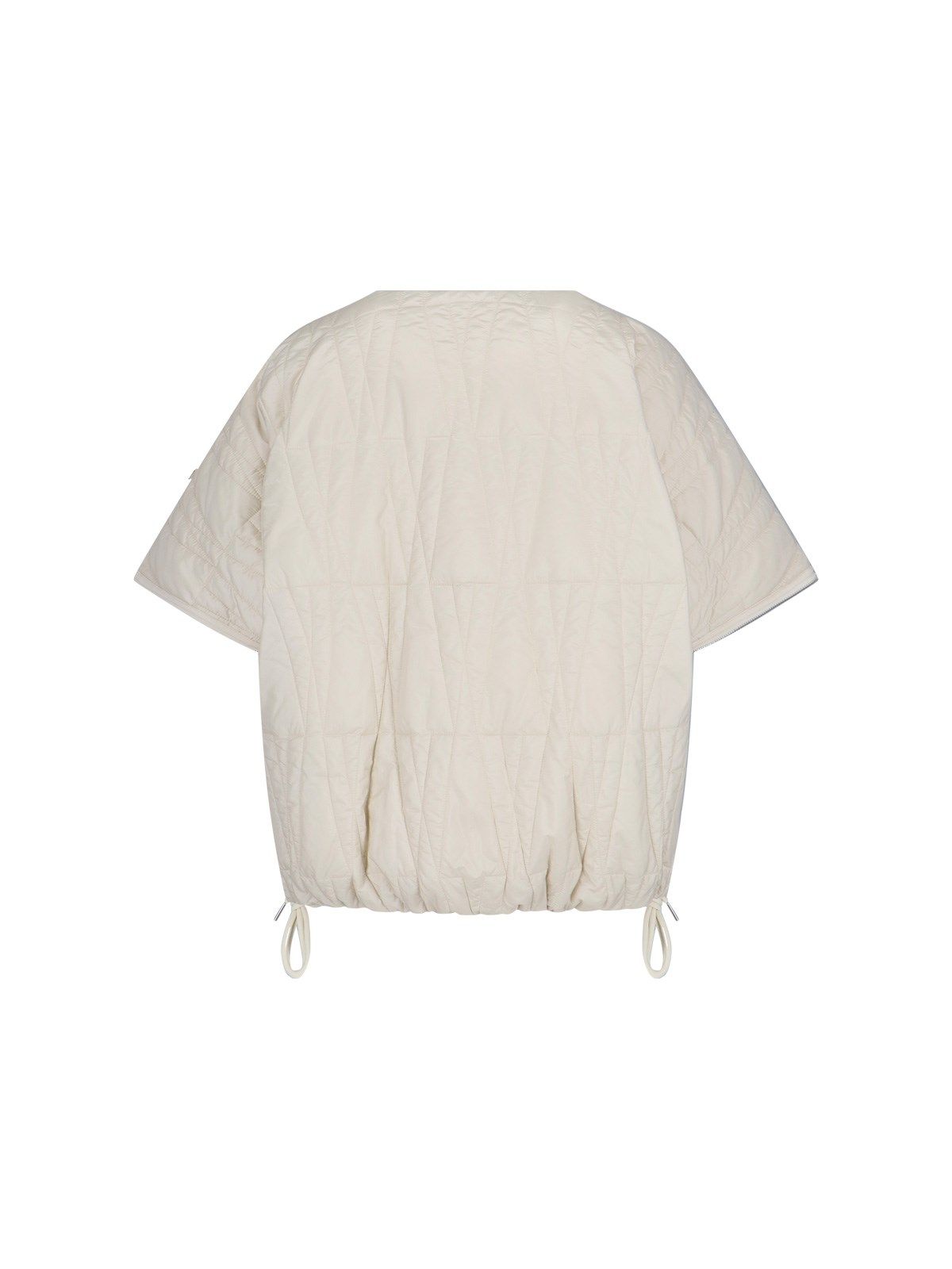 Piumino corto "Haissa 2 in 1" Moncler Genius X Willow Smith, in tessuto panna, design trapuntato ed imbottito, cappuccio coulisse rimovibile, dettagli cut-out laterali, a collo alto, chiusura doppia zip, due tasche bottone laterali, maniche rimovibili, patch logo tono su tono manica, coulisse su fondo, orlo dritto.