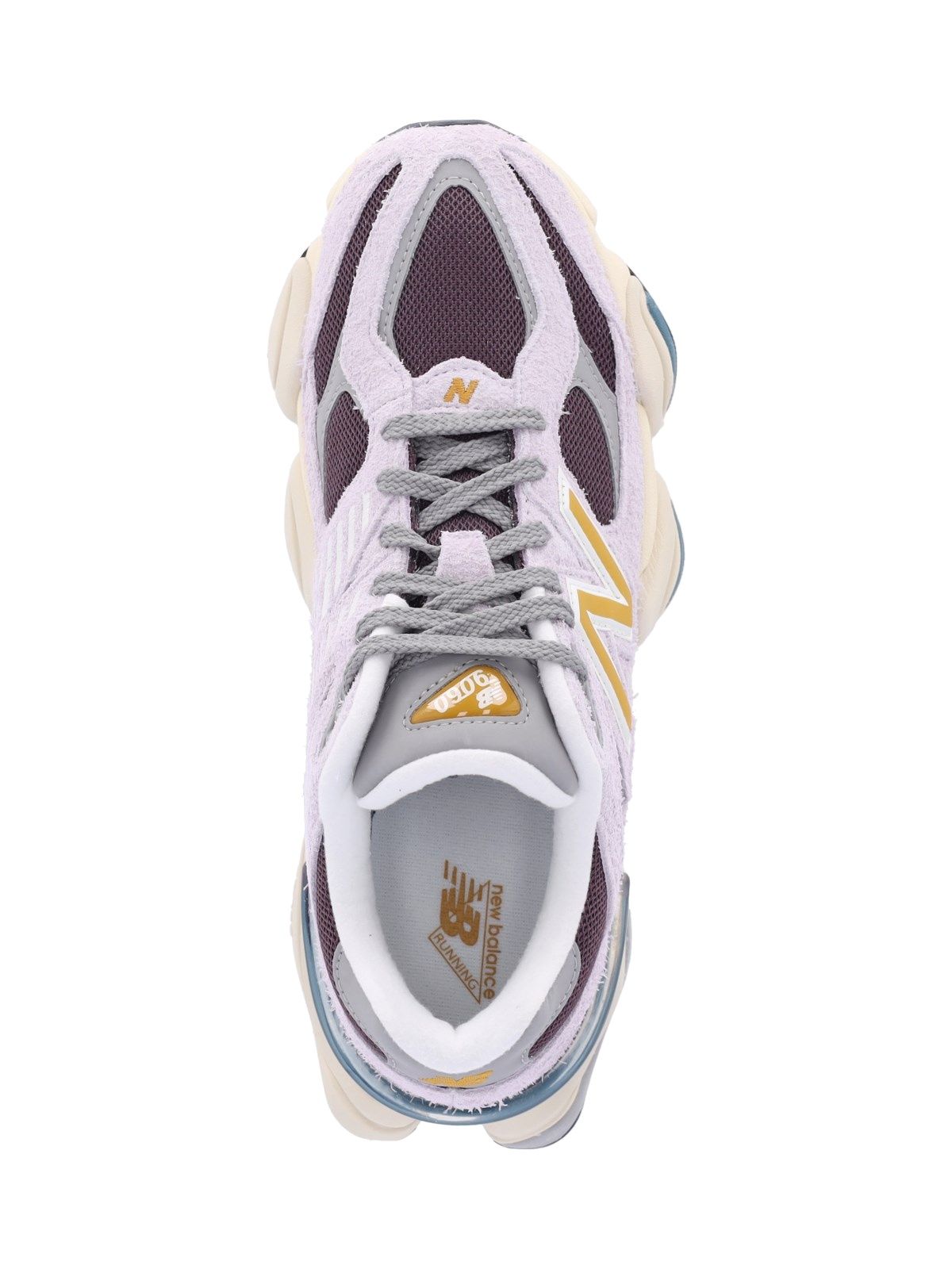 Sneakers "9060" New Balance, in mesh viola, finiture in suede lillà, inserti in rete all-around, punta tonda, chiusura lacci, patch logo linguetta fronte, patch logo N laterale, dettagli gialli, ricamo logo tab retro, suola texturizzata in gomma.