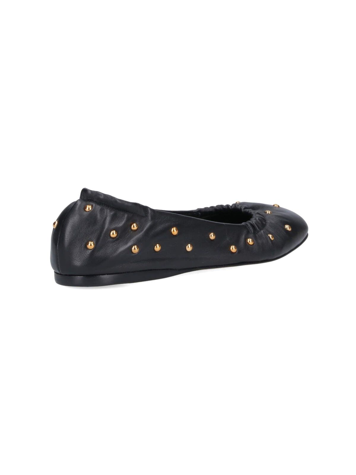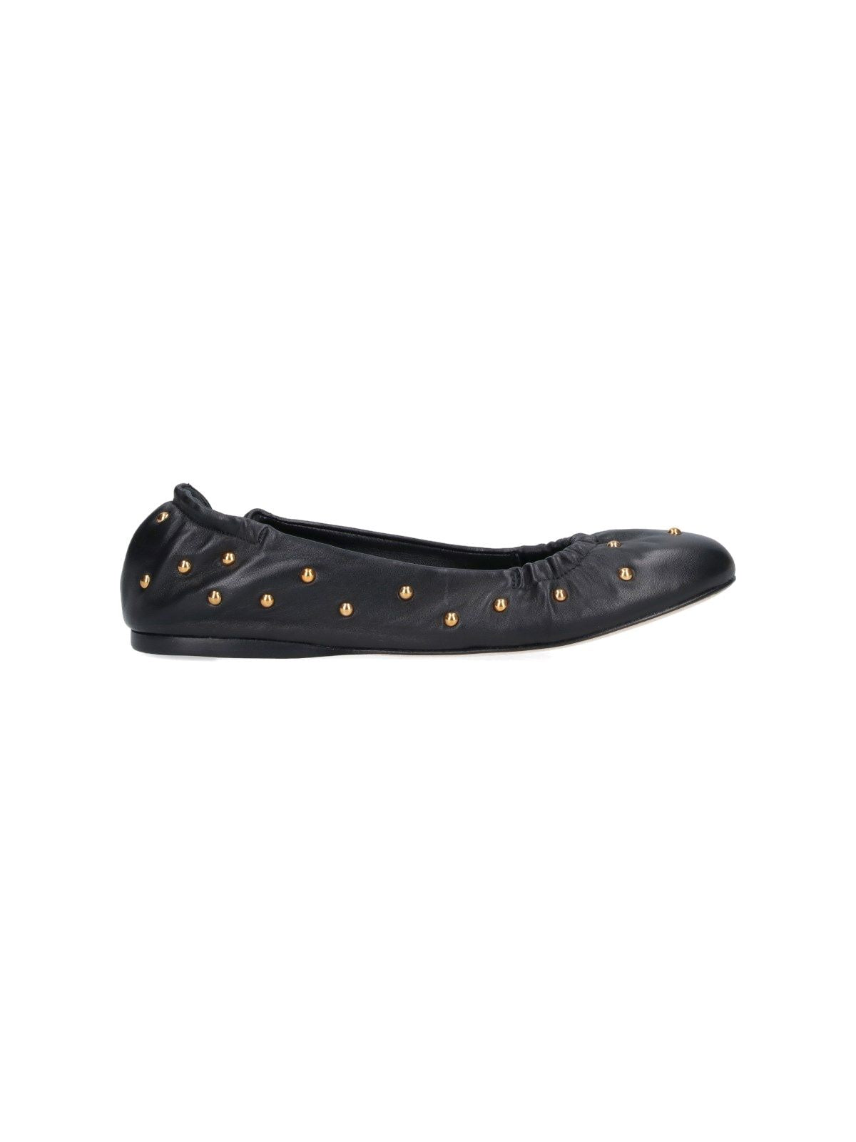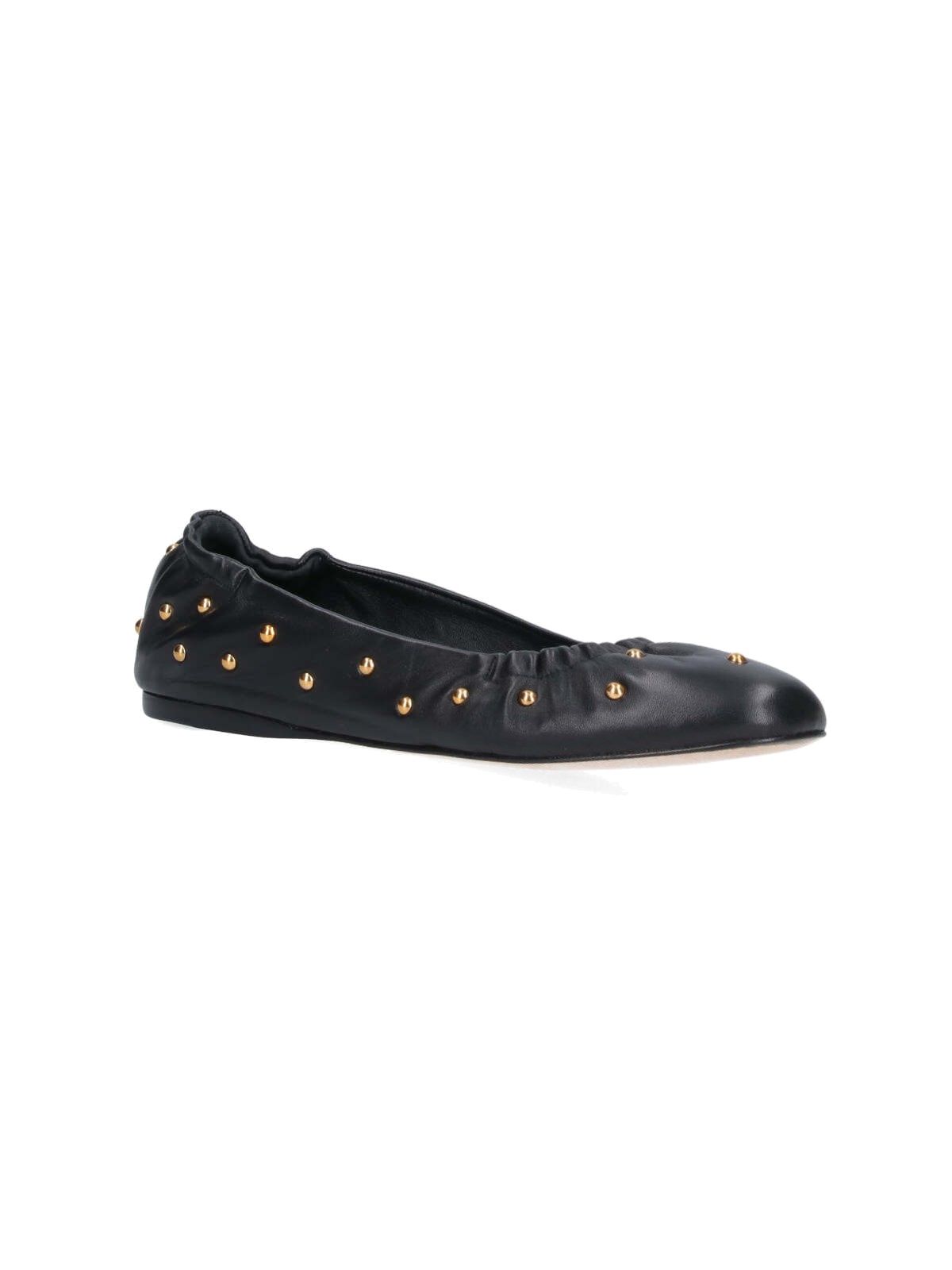 Ballerine "Eia" Chloé, in pelle semi-lucida, design plissettato, applicazione borchie in metallo dorato all-over, punta a mandorla, vestibilità slip-on, suola in nabuk.