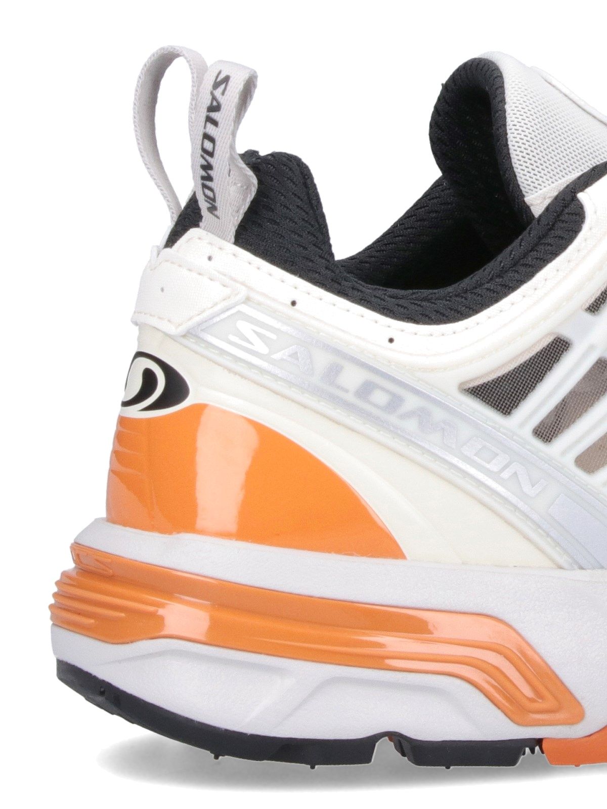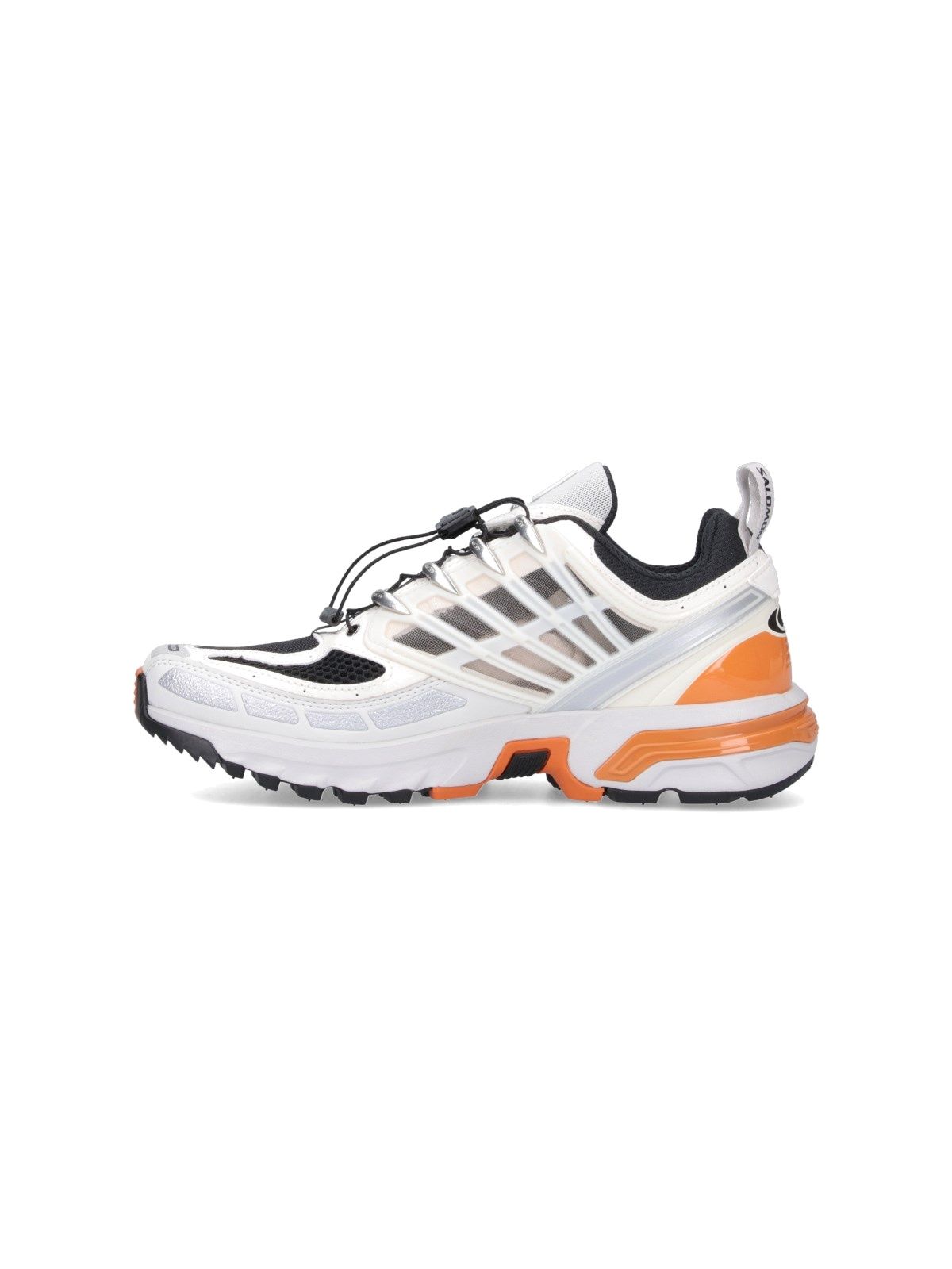 Sneakers "ACS PRO Vanilla Ice Lunar Rock Tomato" Salomon, in tessuto bianco, dettagli in gomma tono su tono e arancioni, inserti in mesh nero, punta squadrata, chiusura regolabile QUICKLACE™, linguetta logo bianco e nera, dettaglio lettering logo laterale, linguetta logata retro, suola in gomma multicolore.