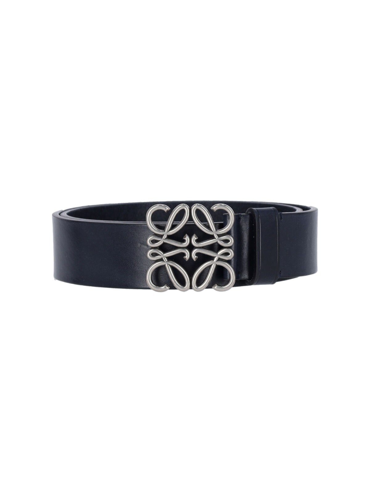 Cintura "Anagram" Loewe, in pelle martellata blu, fibbia logo in metallo argentato fronte, regolabile.