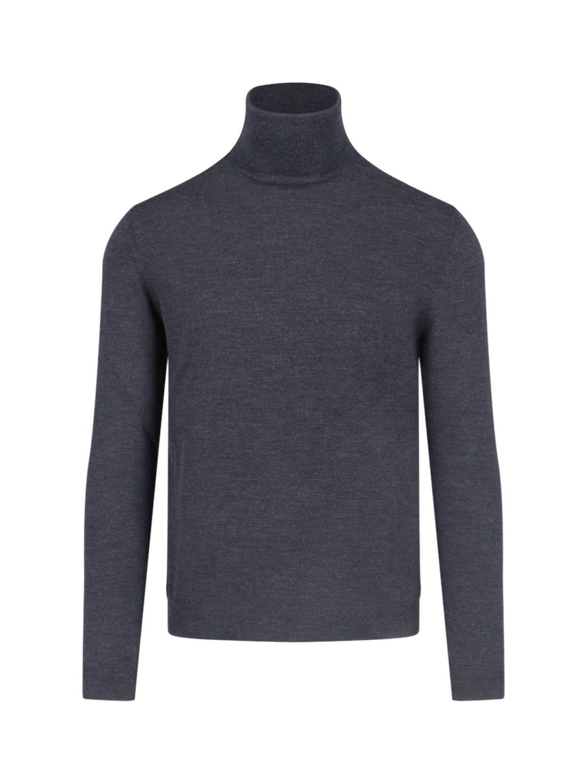 Dolcevita classico Zanone, in lana vergine grigia, finiture a costine, orlo dritto.