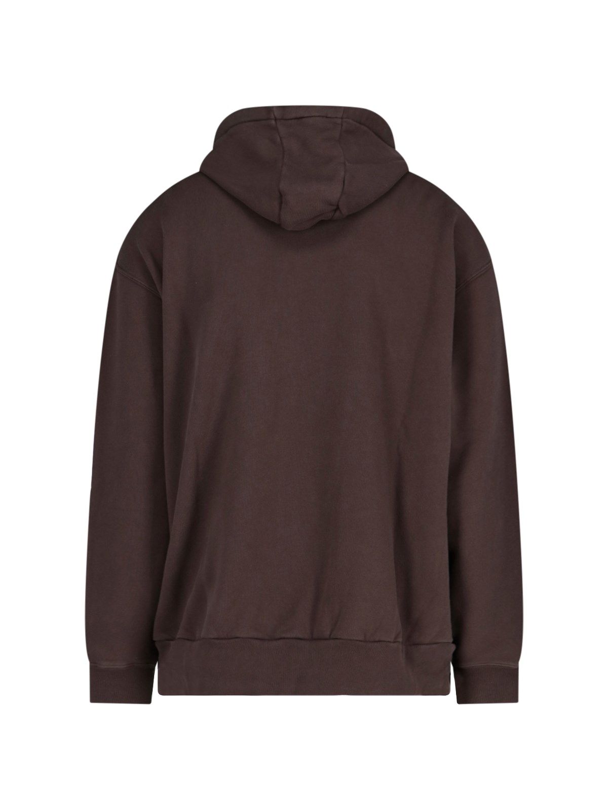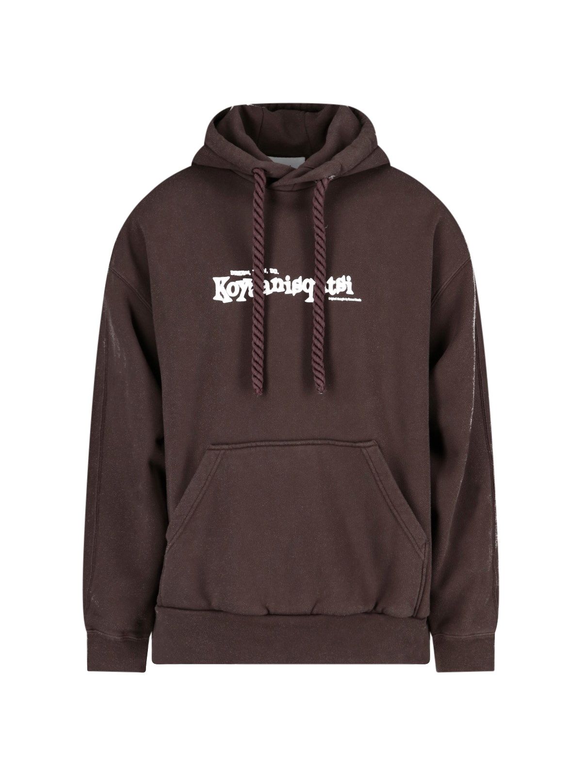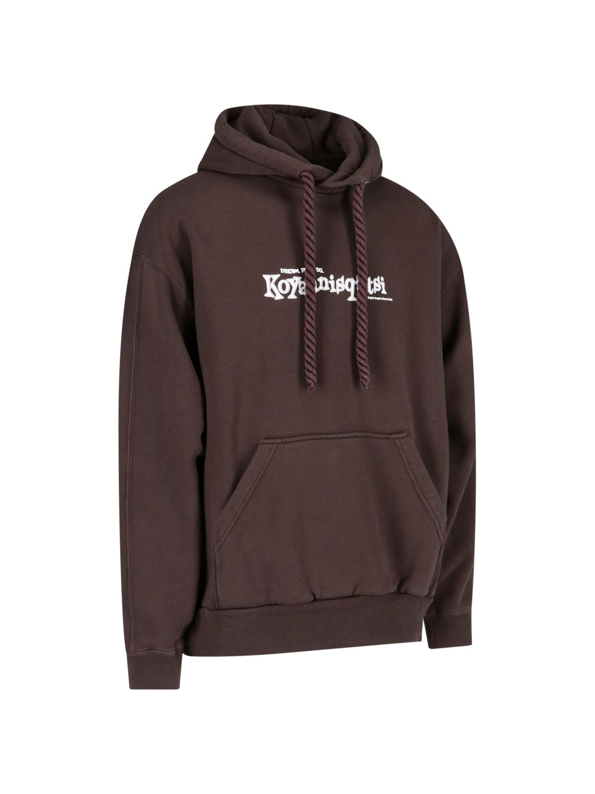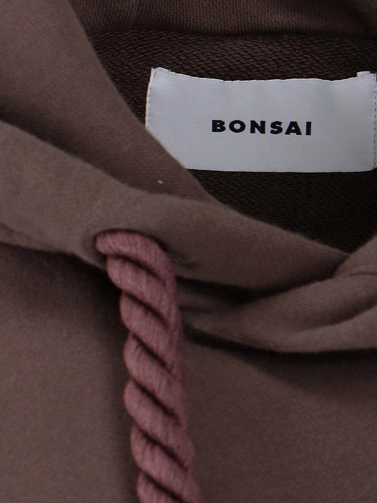 Felpa Cappuccio "Koya" Bonsai, in cotone, colore marrone, dettaglio coulisse corda, spalle scese, stampa colore bianco fronte, una tasca maxi frontale, finiture a costine, fondo regolabile, orlo dritto.