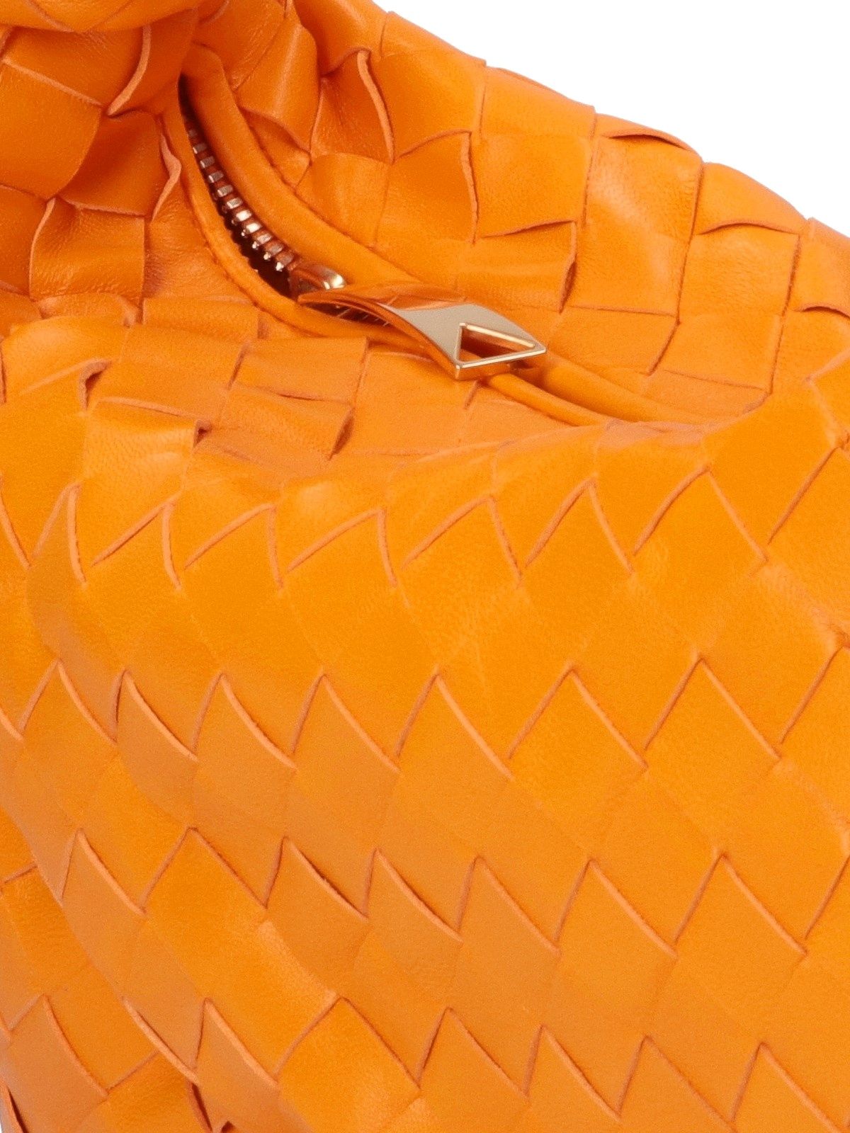 Borsa spalla "Teen Jodie" Bottega Veneta, in pelle, colore arancione, motivo Intrecciato, Una tasca interna con zip, Chiusura con zip, Interno in pelle di vitello, Accessori metallici con finitura argento.