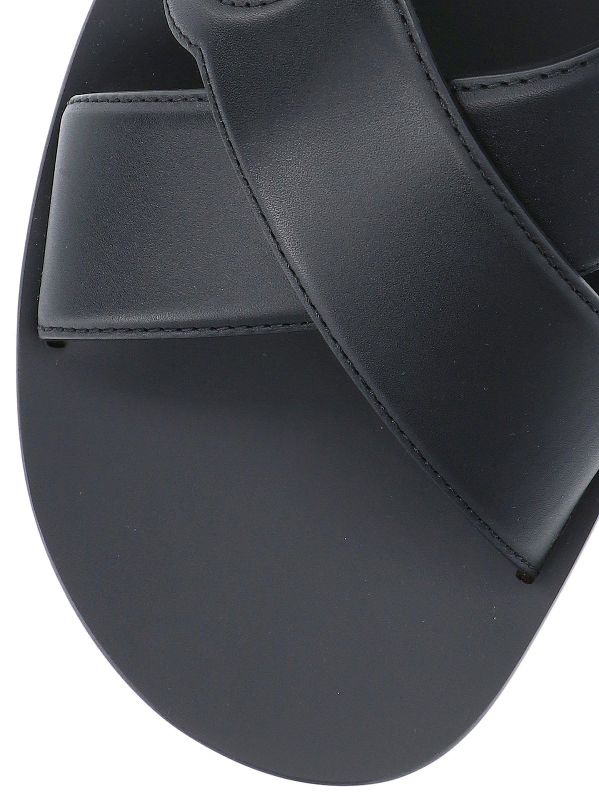 Sandali slide "Incrocio GG" Gucci, in pelle nera, punta tonda aperta, fasce superiori incrociate, dettaglio "GG" cut out, vestibilità slip-on, suola in cuoio.