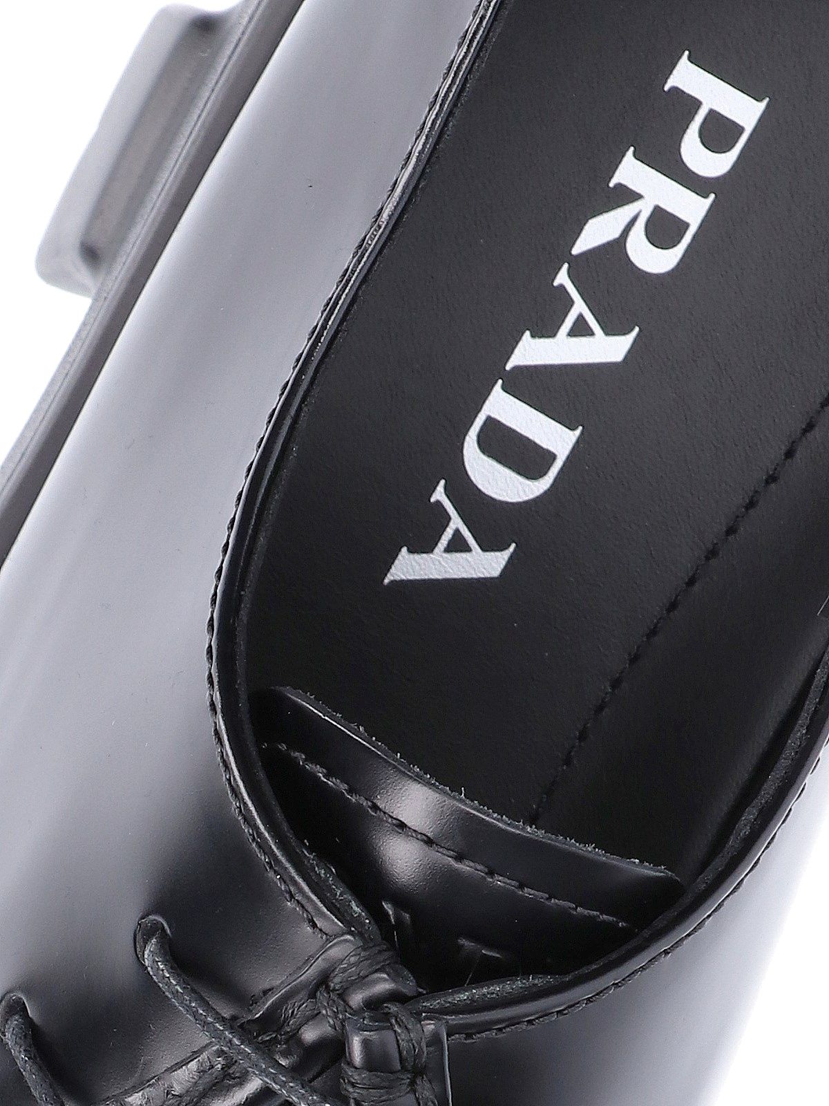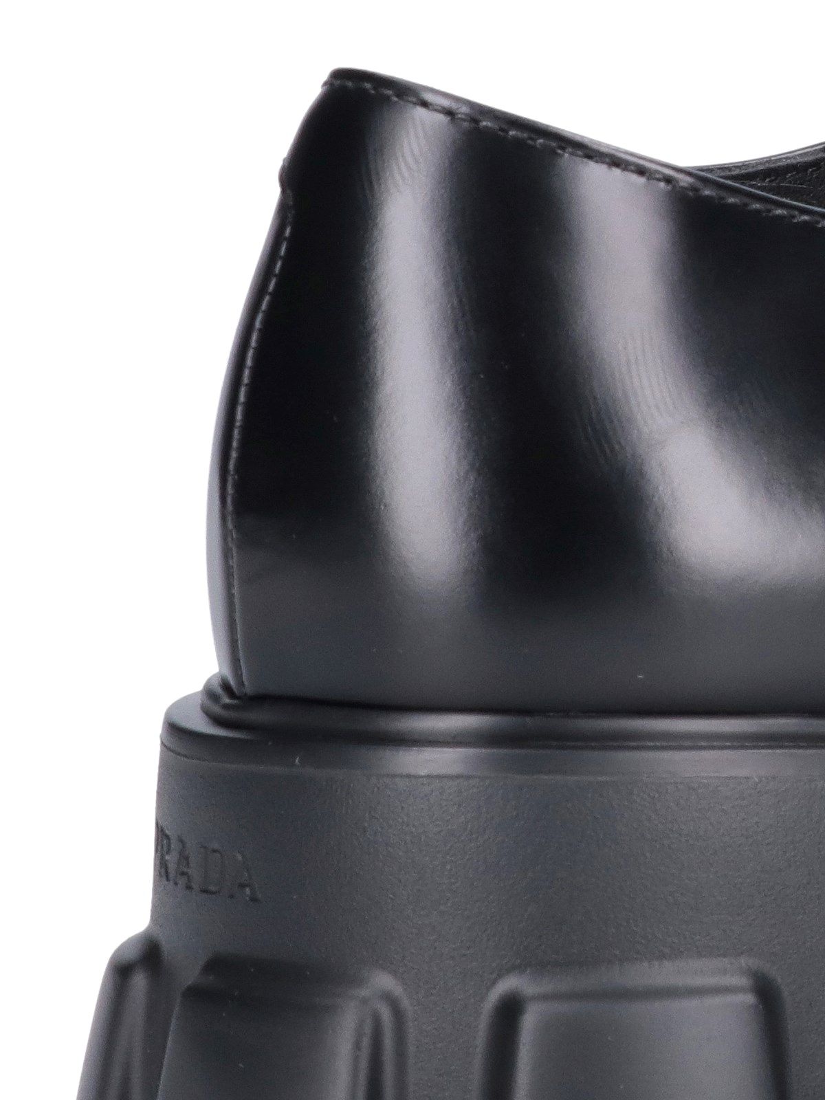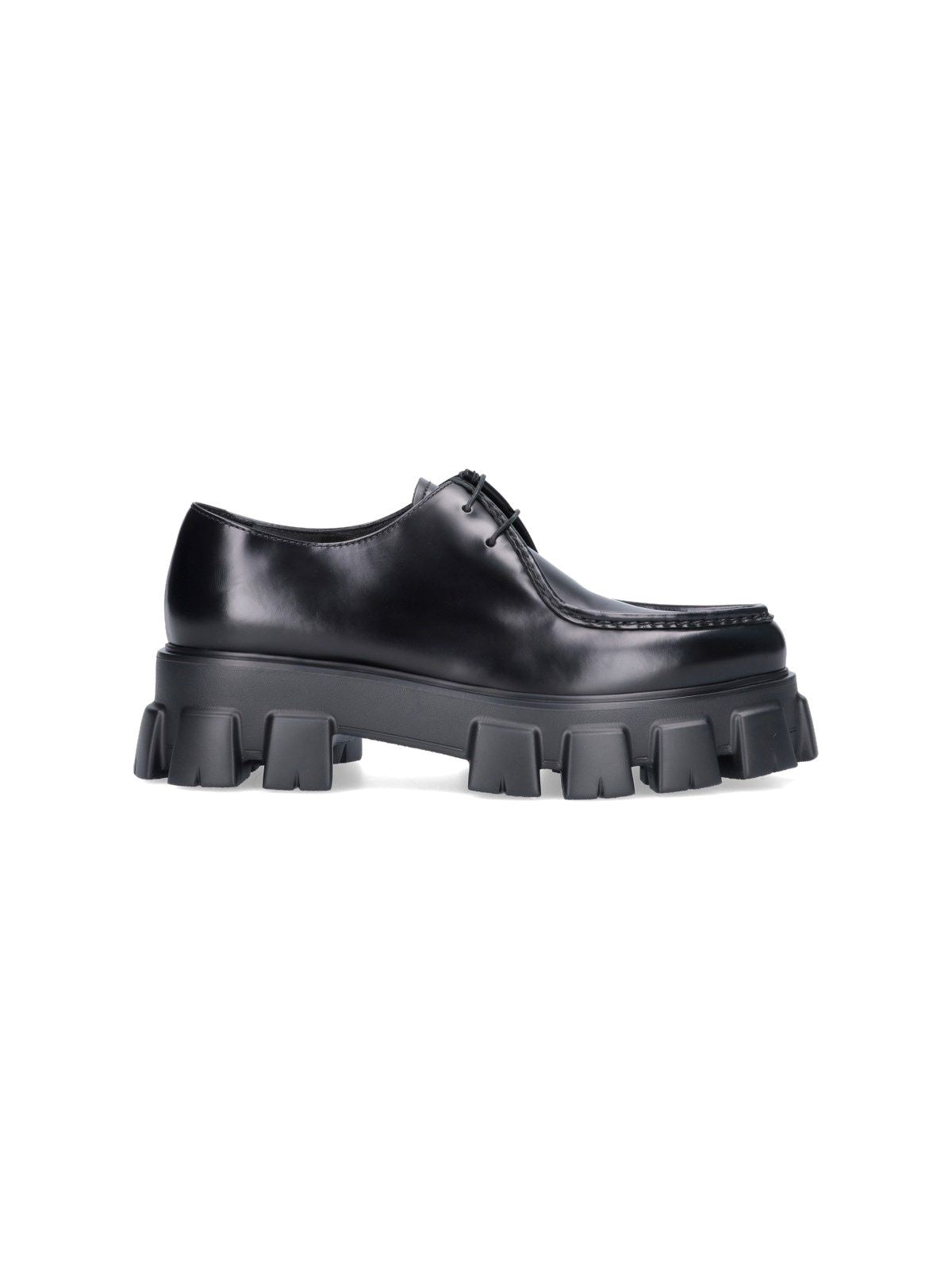 Stringate "Monolith" Prada, stringate, maxi suola carrarmato, battistrada dentato, sottopiede estraibile rivestito di pelle.