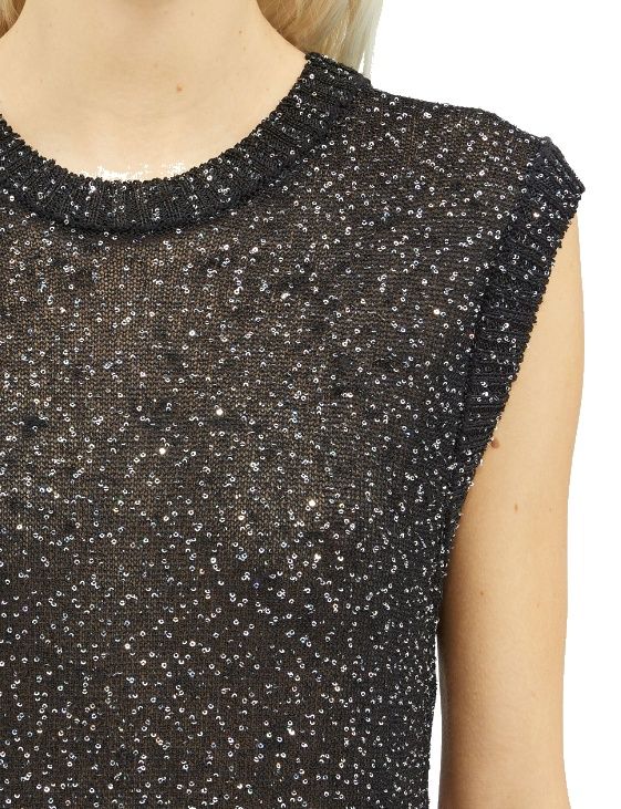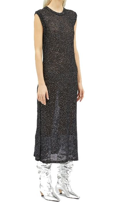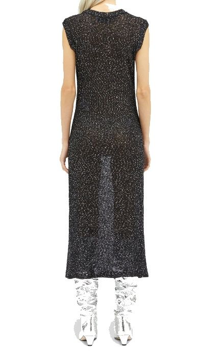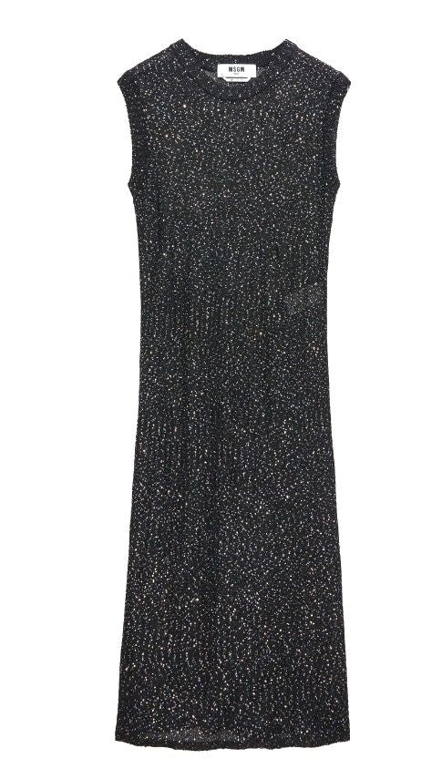 Abito midi semi trasparente con paillettes, rifinitura a coste ed orlo dritto