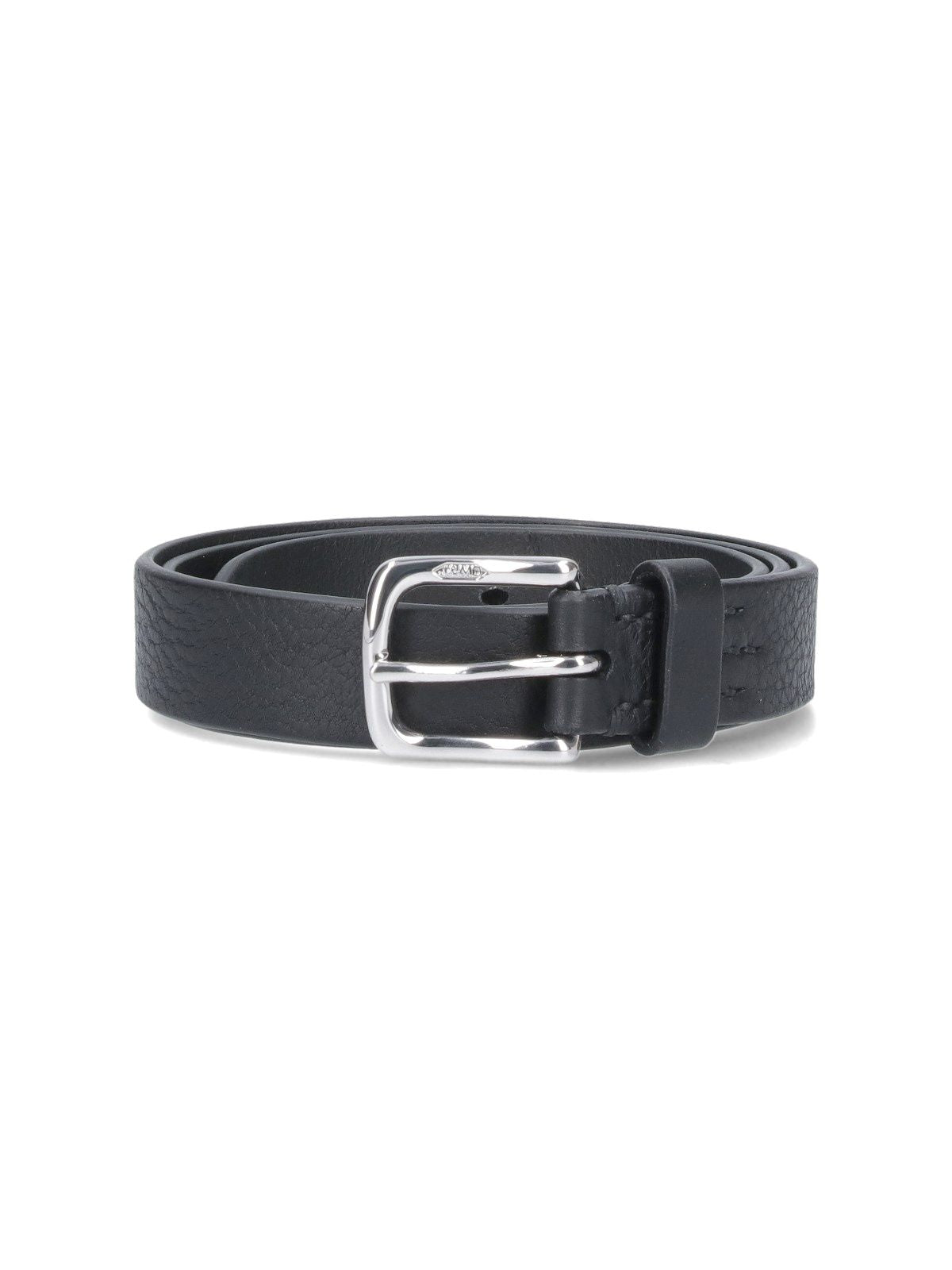 Cintura logo mini J&M Davidson, in pelle nera, chiusura fibbia metallica argentata, dettagli cuciture tono su tono, regolabile.